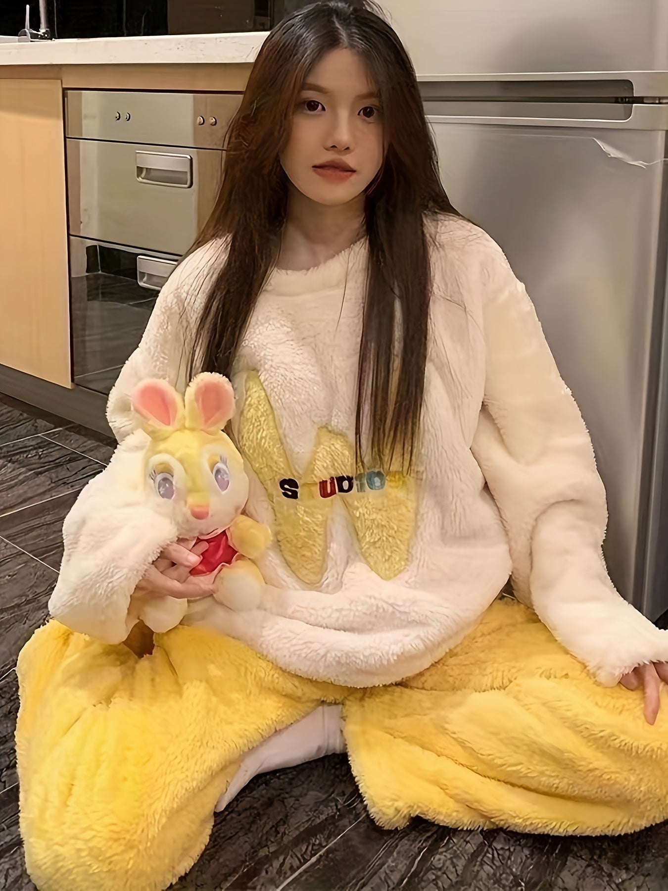 Proč si vybrat toto – Dámské pyžamo z fleecu s výšivkou & kulatým výstřihem na podzim/zimu – Alissa