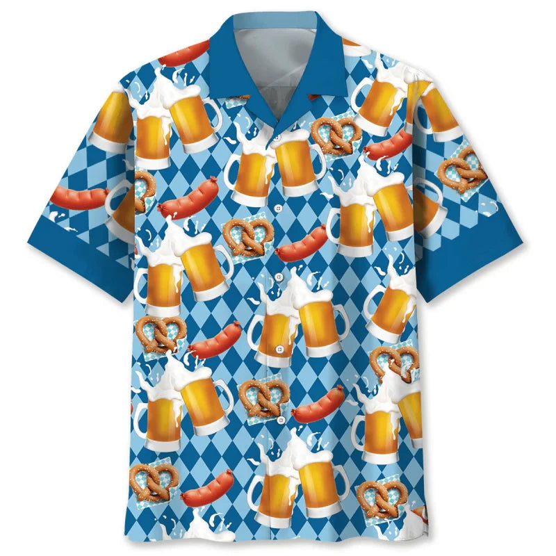 Havajská košile s vzorem piva a preclíků – FeierLaune Oktoberfest 2025