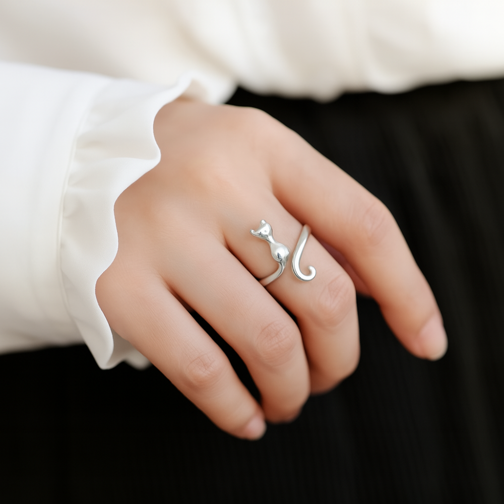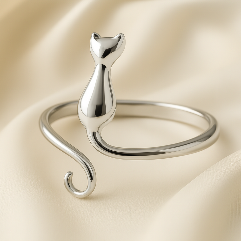- Trendy elegance: Nechte se okouzlit půvabem koček s tímto trendy prstenem inspirovaným kočkami, který podtrhne váš vzhled a vaši lásku ke kočkám.