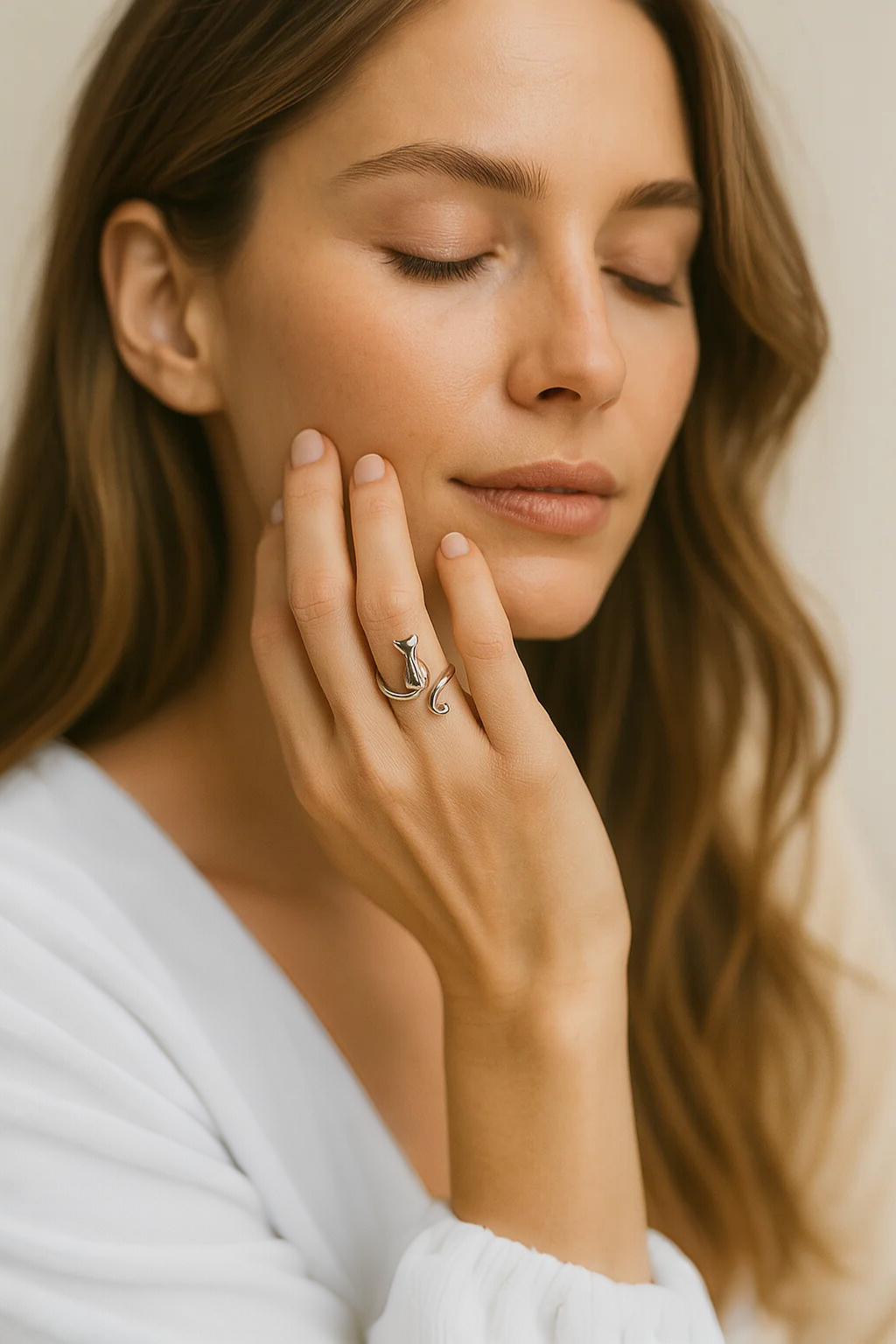 Dobývejte srdce s naším exkluzivním stříbrným prstenem s motivem nočních koček, dokonalou směsí trendového designu a jemného řemeslného zpracování.